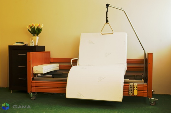 1. elektryczna regulacja oparcia, zgięcia i podnoszenia umożliwia ustawienie dowolnej pozycji osoby niepełnosprawnej w łóżku od leżącej na wznak do siedzącej ze zgięciem nóg